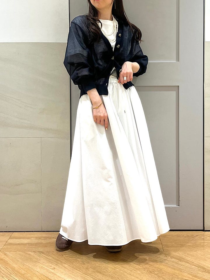 素材感・着心地:接触冷感機能があるため、涼しく快適。裏地しっかりついているため、白でも透けない素材です。
