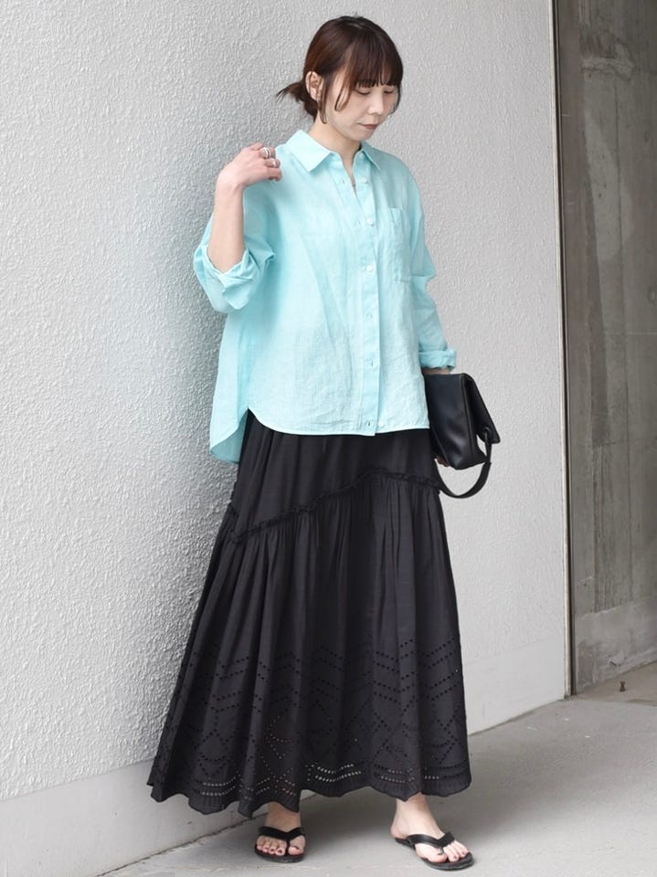 素材感・着心地:リネン特有のシャリ感があり、これからの時期に重宝しそうな1枚。