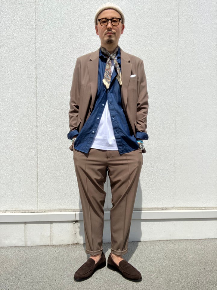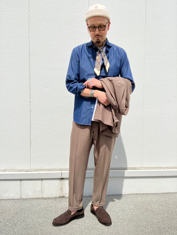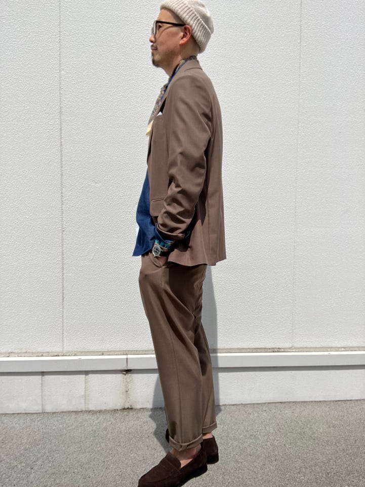 ネクタイを絞めてかっちりとしたスタイルも良いですが今回はカジュアル感を意識してみました。