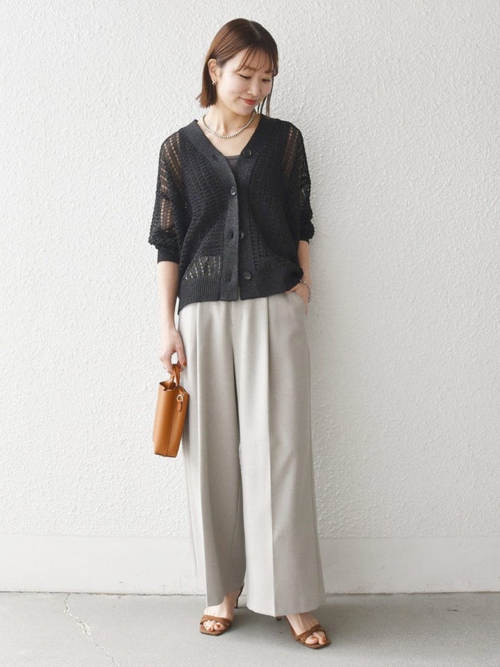 着用アイテム:ギマ シアー Vネック ミディ ニット カーディガン ブラック