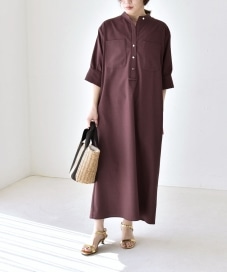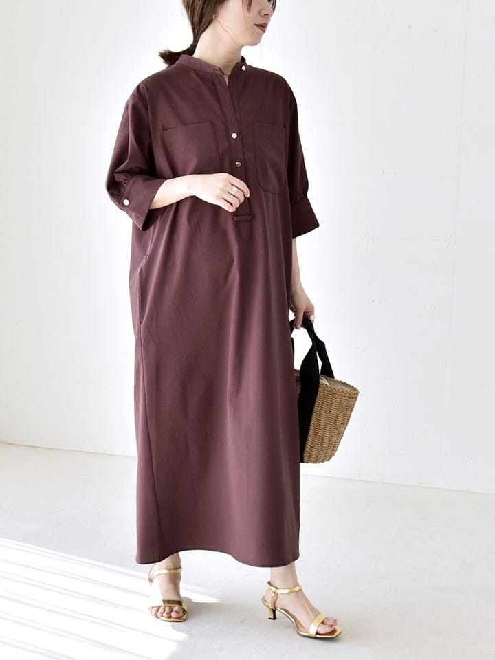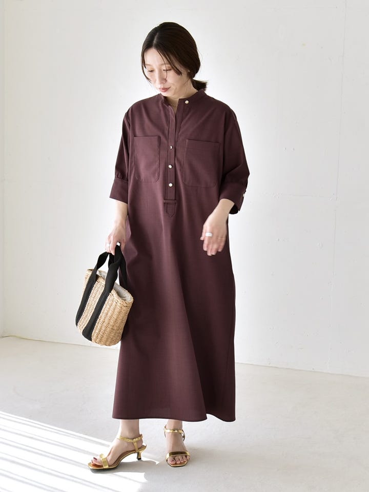 サイズ感:身体のラインを拾わないゆったりとしたシルエットで着られます。袖は肘が隠れる長さ。着丈は足首が見える長さ。