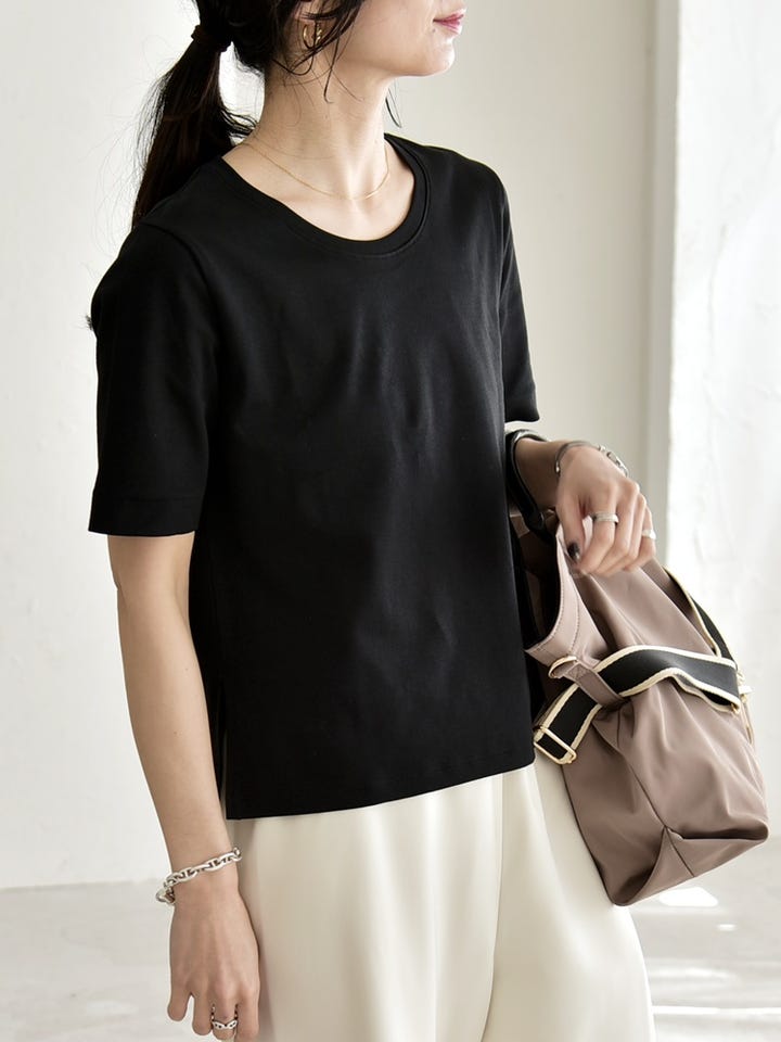 着心地:綿の肌当たりの良い生地。くたっとしすぎない素材感です。