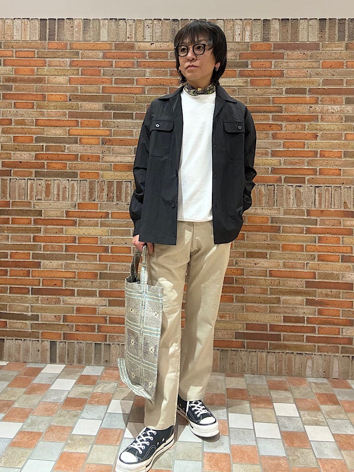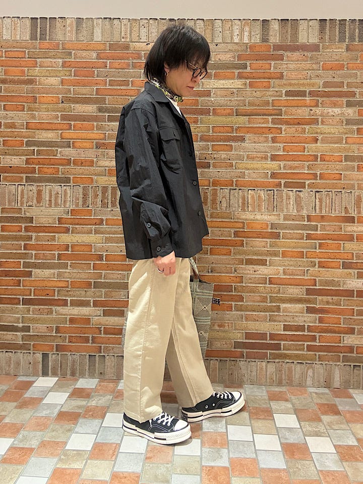 サイズ感:こちらもシャツ同様ゆったり目のシルエットとなります。