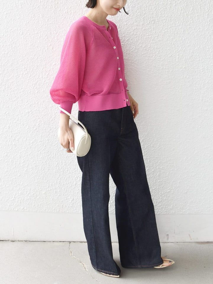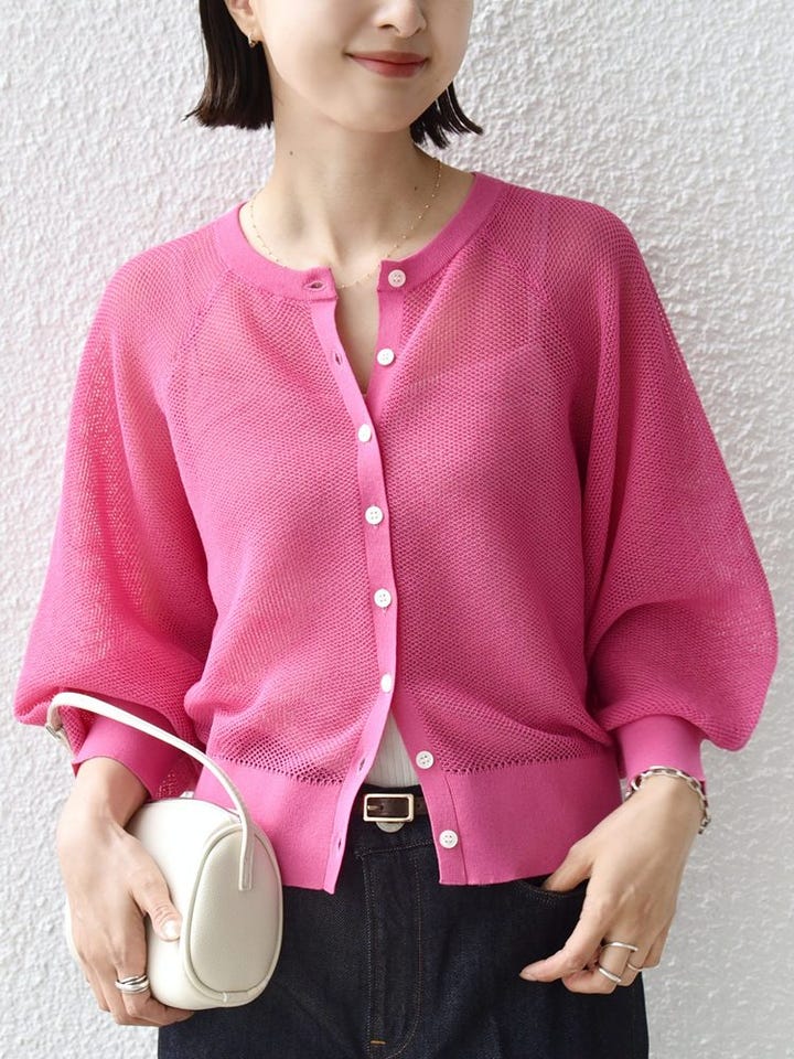 着心地:軽やかな着心地で、型崩れしにくいので持ち運びにも便利なアイテム。程良い透け感で、露出が苦手な方でも着やすいカーディガンです。