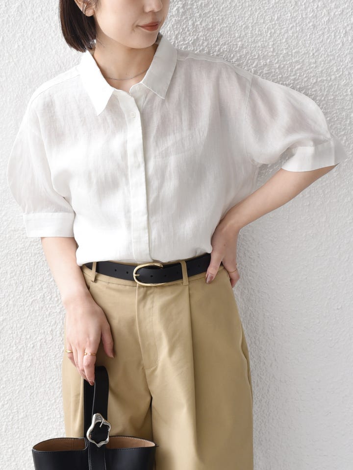 着用アイテム:〈洗濯機可能〉ユーロリネン ボクシー パフスリーブ シャツ◆