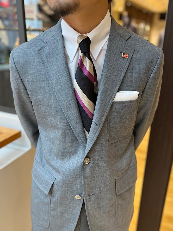 〔ONE SIZE〕【SHIPS別注】TUDOR ROSES: シルク ヘリンボーン レジメンタル ネクタイ