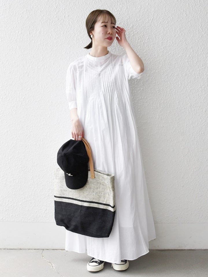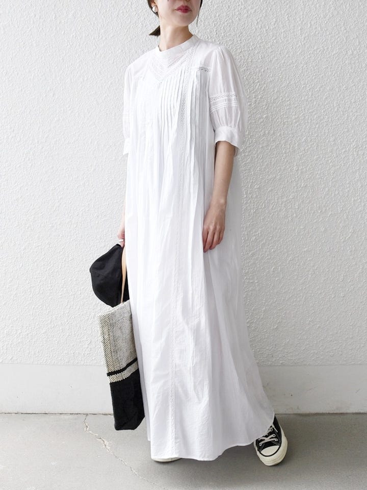 着用アイテム:SHIPS any:〈洗濯機可能〉キャンブリック レース ピンタック パフスリーブ ワンピース オフホワイト