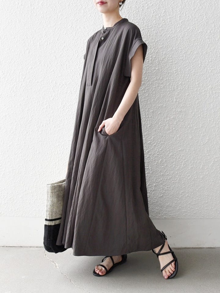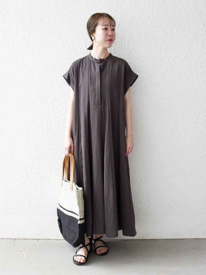 着用アイテム:SHIPS any:〈洗濯機可能〉ツイル バンドカラー フレンチ フレア シャツ ワンピース チャコールグレー