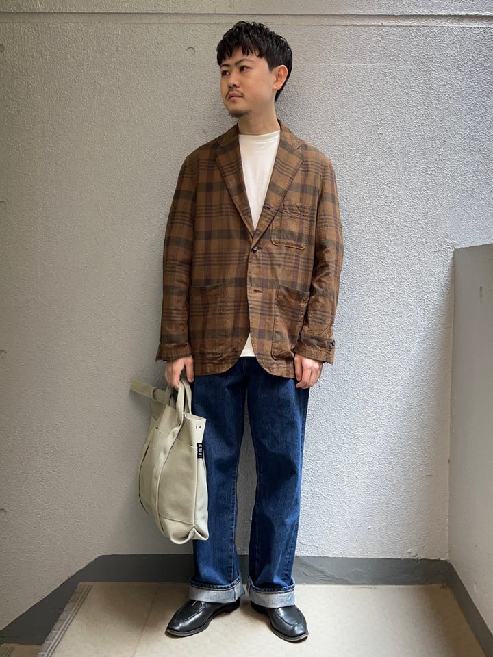 着心地:リネン素材のジャケットです。着てみるとあまりカジュアル過ぎないサイズバランスなので、生地感などはカジュアルライクですが、綺麗目に着用できます。