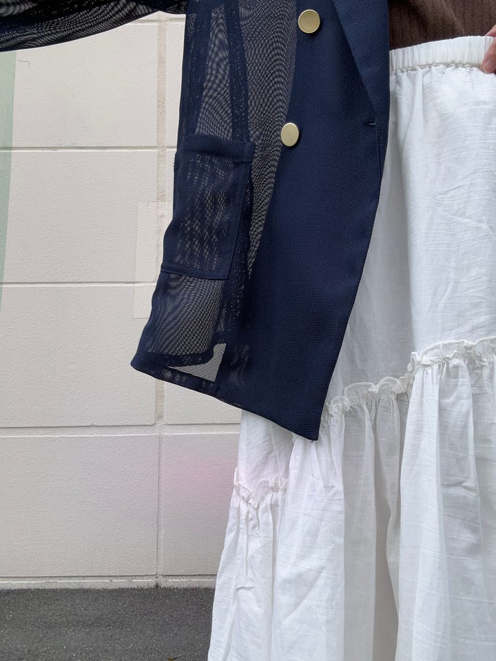 シャリっとしたメッシュ生地で春夏ぴったり羽織っていただけるジャケットです♪
