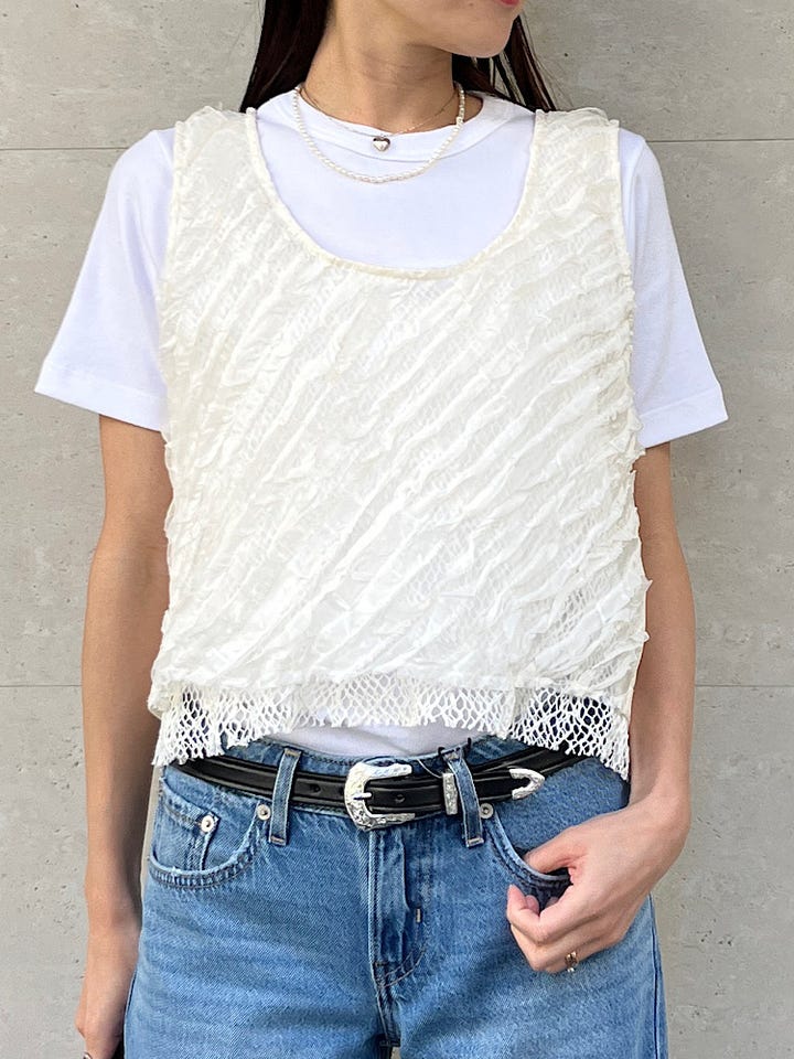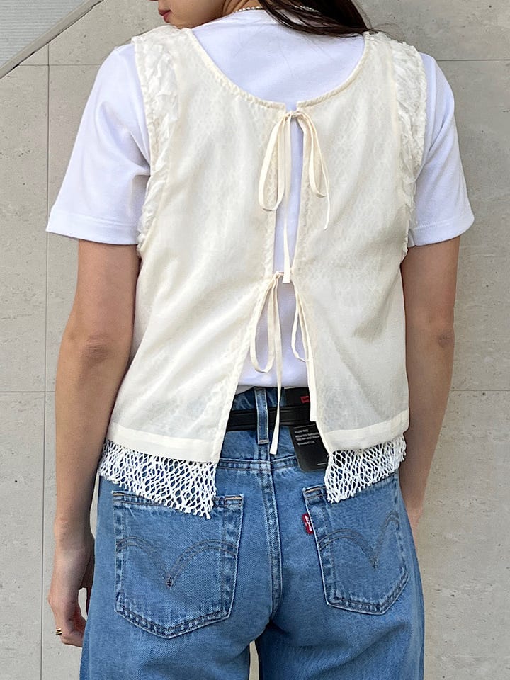 素材感がコーディネートのポイントになるトップスです。リボンの方を前にしたり、色々な着方が楽しめます!
