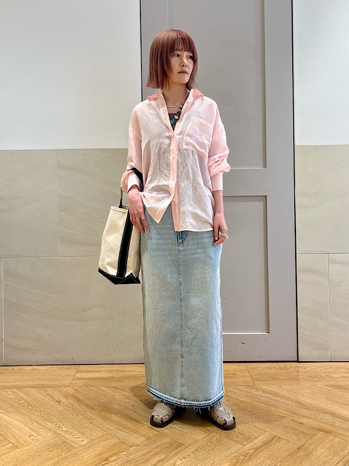 すっきり丈長めシルエットとダメージ具合が絶妙で、上品にも可愛くも履けるデニムスカートです◎履き心地も柔らかく、主役になるデニムです!!