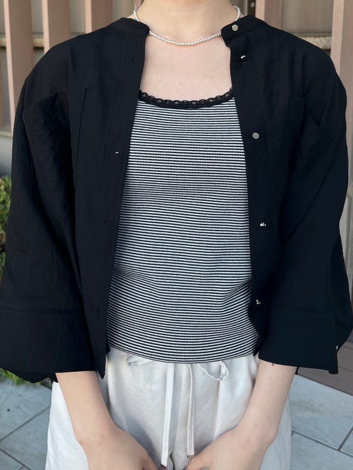 〔ONE SIZE〕〈手洗い可能〉ボーダー レース トリミング 2WAY タンクトップ