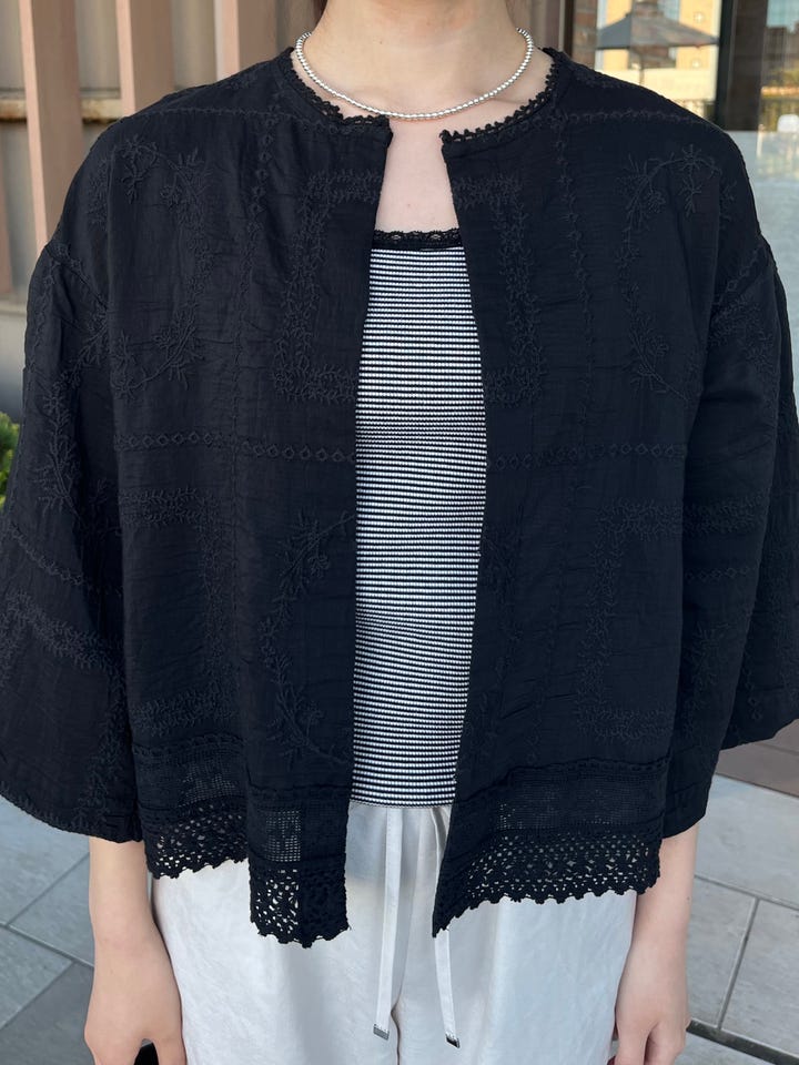 〔ONE SIZE〕〈手洗い可能〉パッチワーク レース ショート スリーブ 羽織 ブラウス