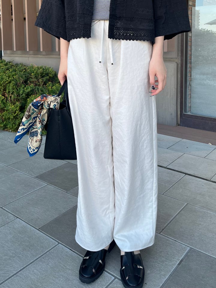 着心地:ウエストがゴムな為快適。夏でもサラッと履ける。