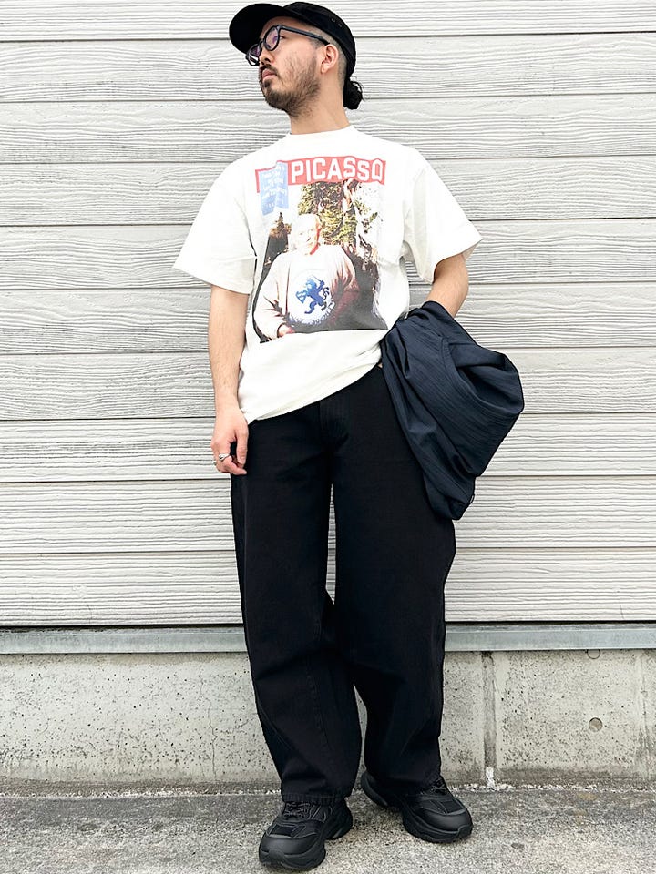 着心地:パブロピカソの写真がプリントされているカジュアルなTシャツ。