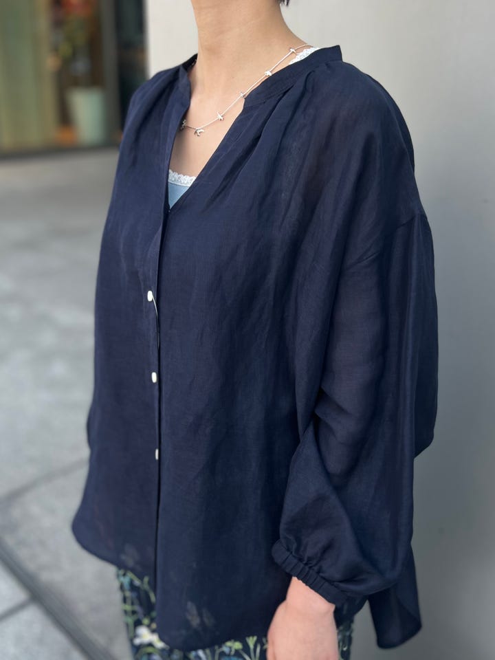 〔ONE SIZE〕《一部追加予約》〈手洗い可能〉IMPERIAL LINEN 混 バンドカラー スキッパー シャツ