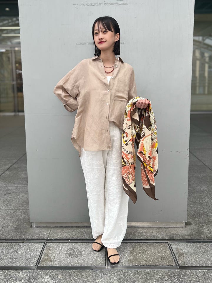使用感:麻混素材かつシアー感のある一枚なので暑い夏場でも快適です。