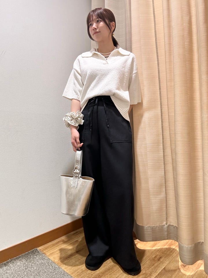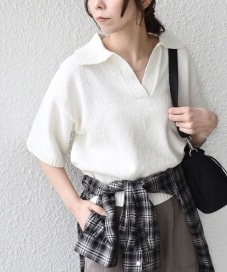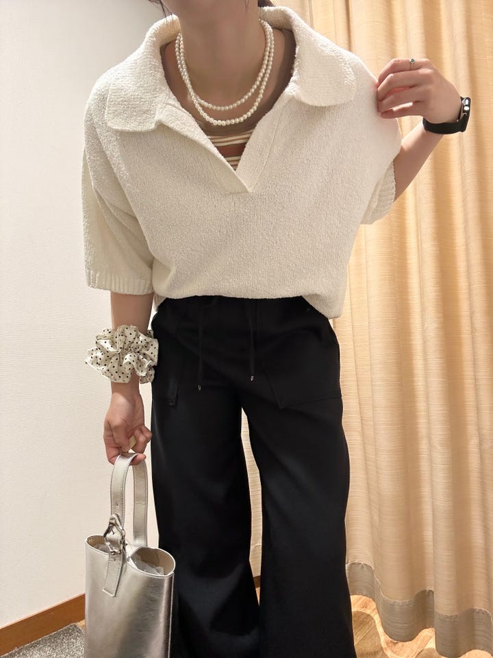 着心地:パイル素材のスキッパーニットです。程よい肉感で一枚で着ていただいてもおしゃれ見えします◎