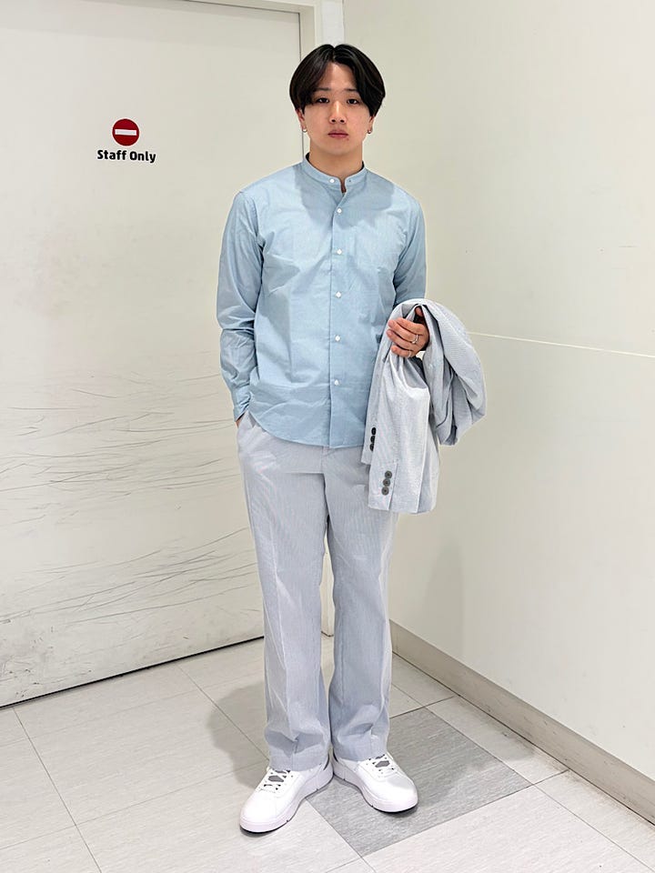 ◆ 着用アイテム:バンドカラーシャツ