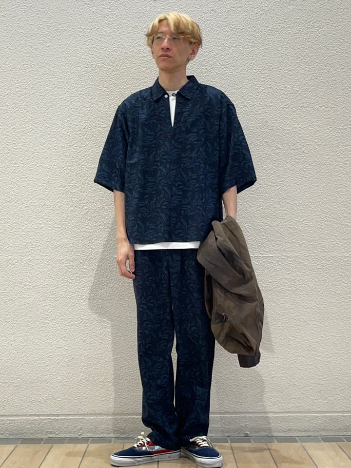 リネンライクなスキッパーシャツはセットアップも可能!