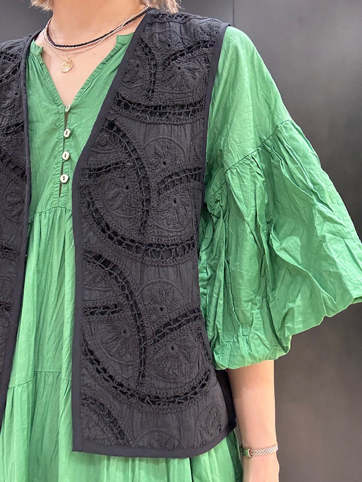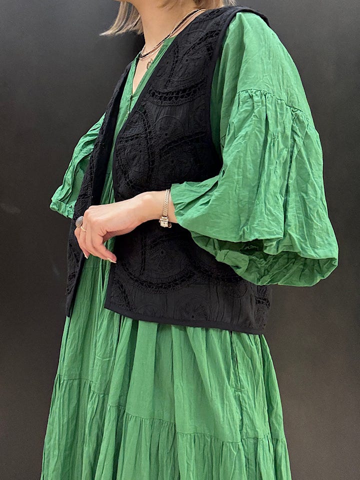 【サイズ感】全体的にボリュームのあるワンピースですが胸周りなどはすっきり。