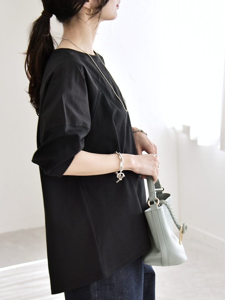 〔ONE SIZE〕《予約》quaranciel:〈接触冷感/汗染み防止加工/洗濯機可能〉ドッキング Aライン カットソー