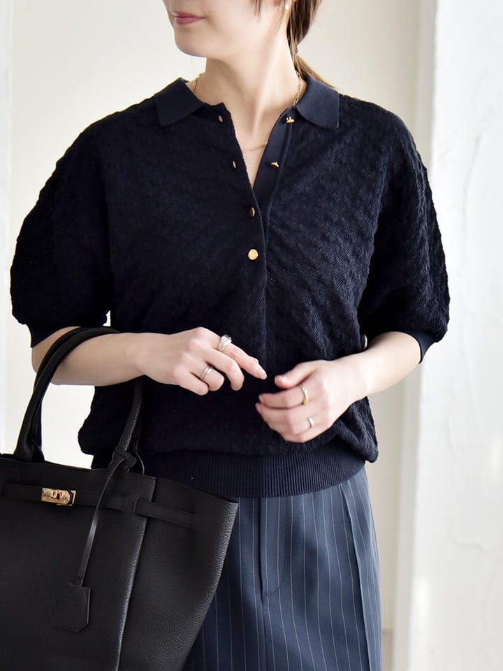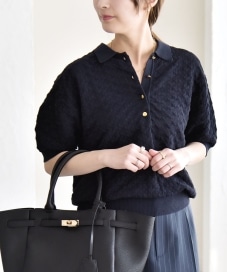〔ONE SIZE〕《予約》quaranciel:〈手洗い可能〉透かし編み ポロ ニット プルオーバー