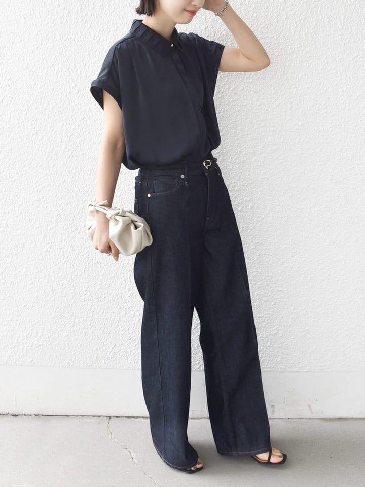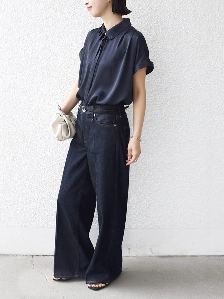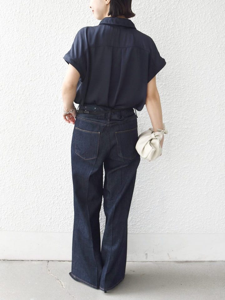 素材感:リヨセル混のデニム素材で、通常のデニムに比べて柔らかく、しなやかな落ち感があります。