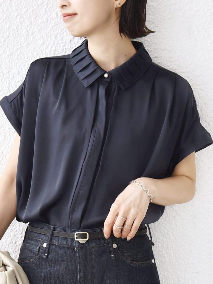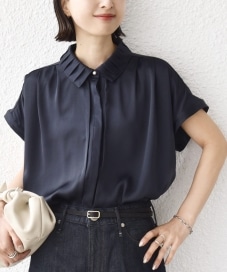 〔ONE SIZE〕《予約》【WEB限定】〈手洗い可能〉ヴィンテージ サテン 襟 タック デザイン ブラウス