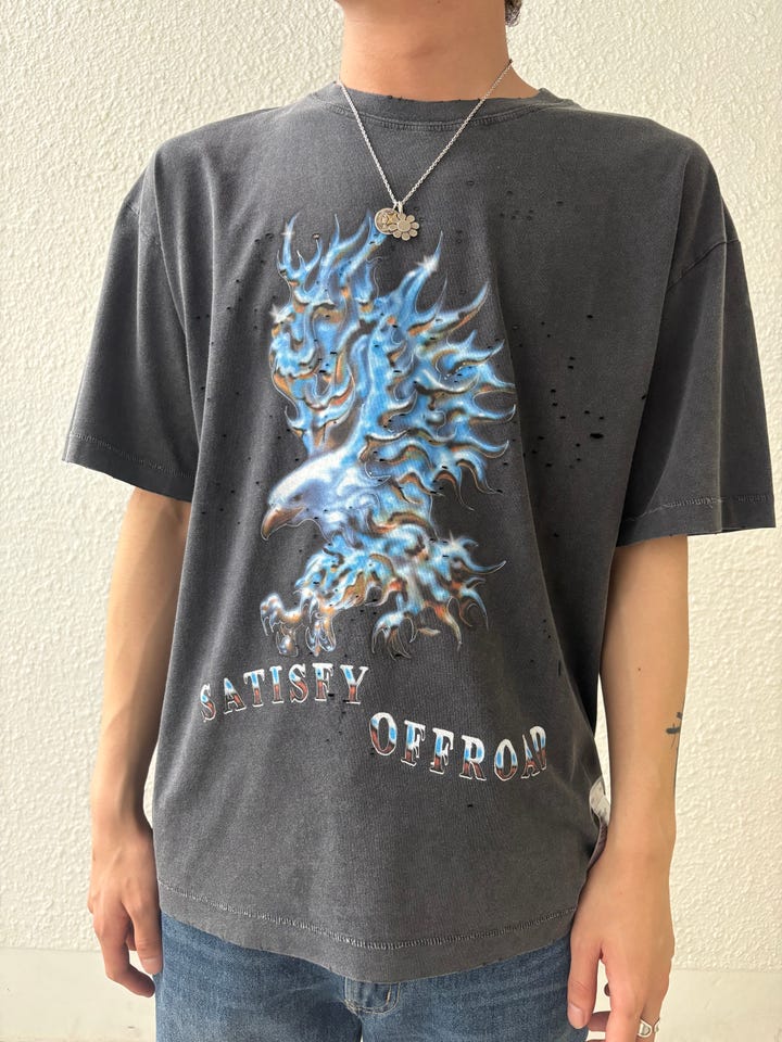 素材感/着心地:フェード感あるボディにダメージ加工がされており、通気性も高く、着心地抜群