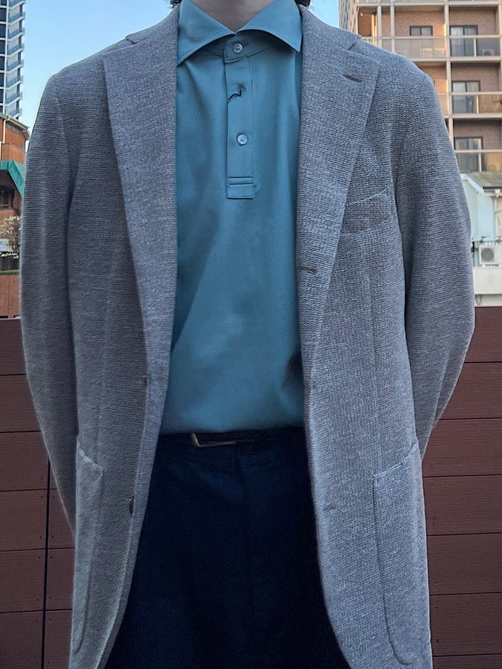 メランジ生地になっておりますのでノンストレスで着用でき、ビジネスはもちろん、カジュアルにも着用できます。