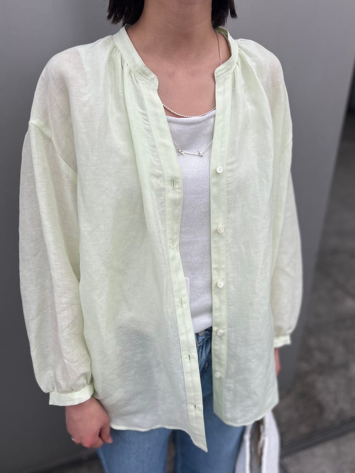 〔ONE SIZE〕《一部追加予約》〈手洗い可能〉IMPERIAL LINEN 混 バンドカラー スキッパー シャツ