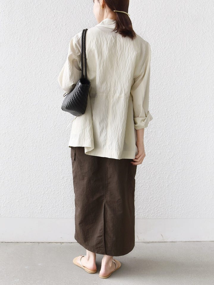 ■着心地:生地が軽くてやわらかいのでとても着やすいです。ラフに羽織れる春夏にぴったりなジャケットです。
