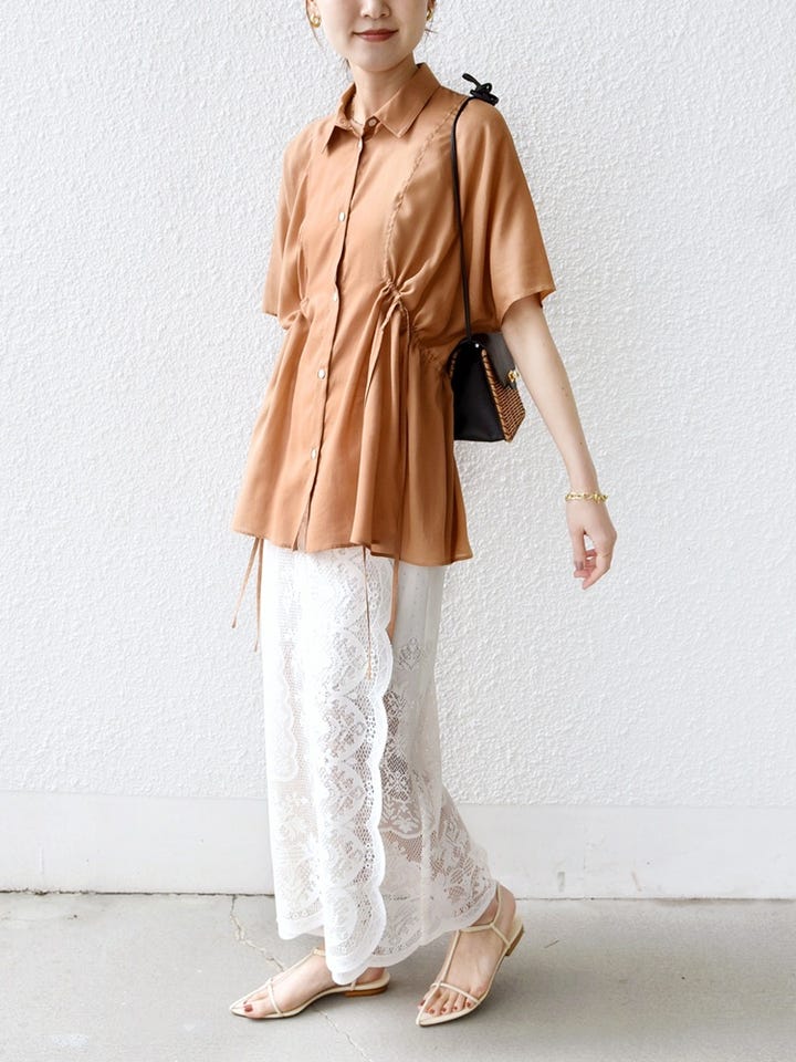 ウエストをぎゅっと絞るとスタイルアップも叶う1枚です。