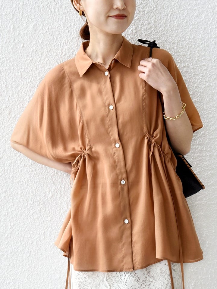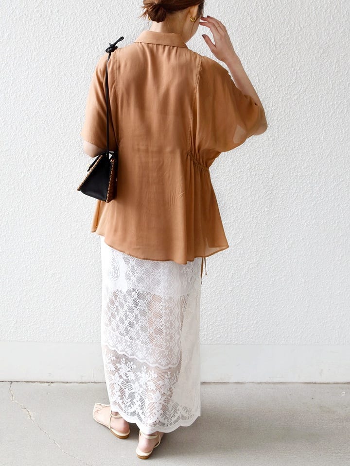 〔ONE SIZE〕《予約》【WEB限定】〈手洗い可能〉ウエスト ドロスト シアー ブラウス