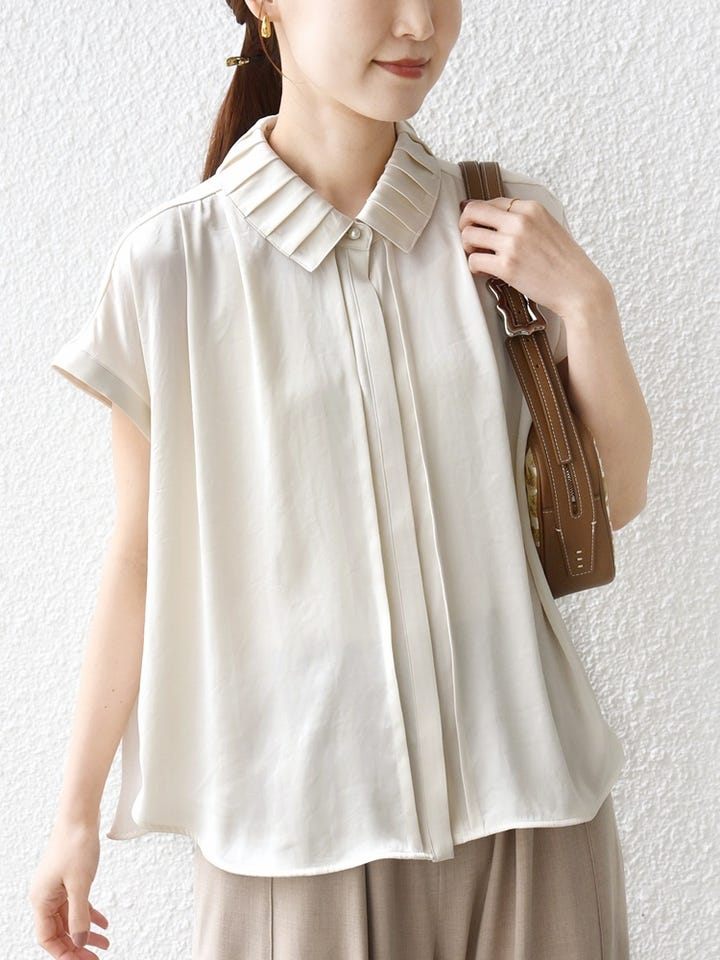 〔ONE SIZE〕《予約》【WEB限定】〈手洗い可能〉ヴィンテージ サテン 襟 タック デザイン ブラウス