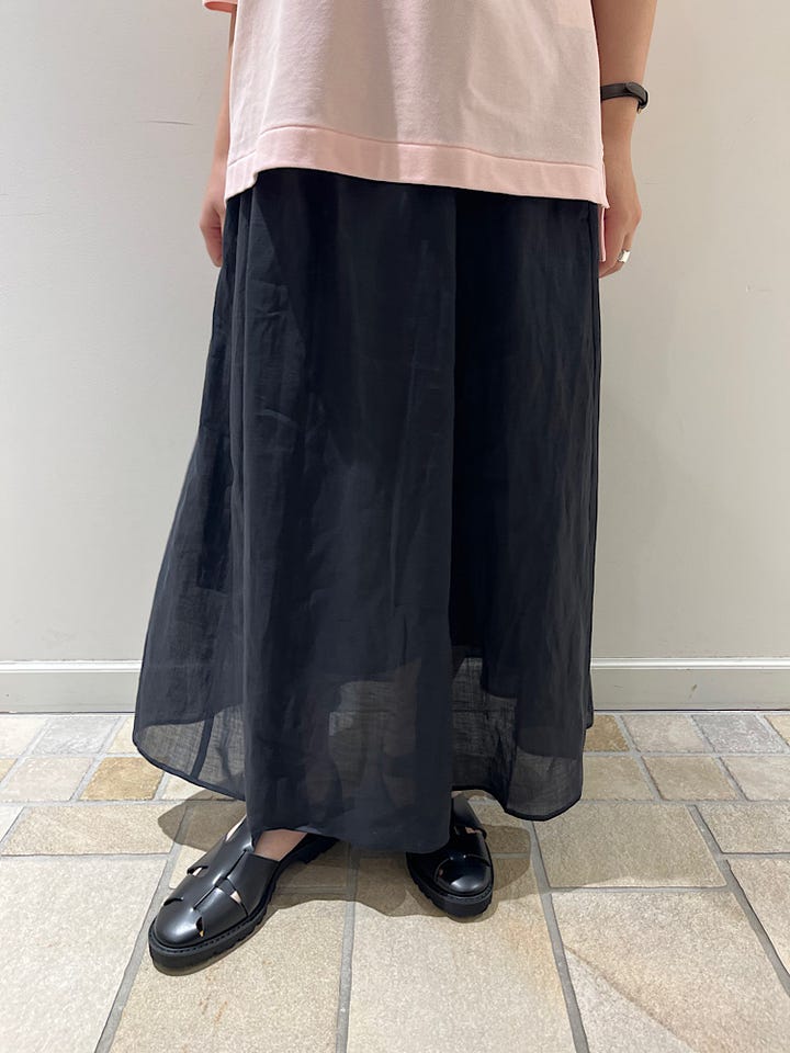 ラミー素材で風通しよく春夏にぴったりなアイテムです。光沢感じられ、そこまで広がりすぎず上品な印象です。