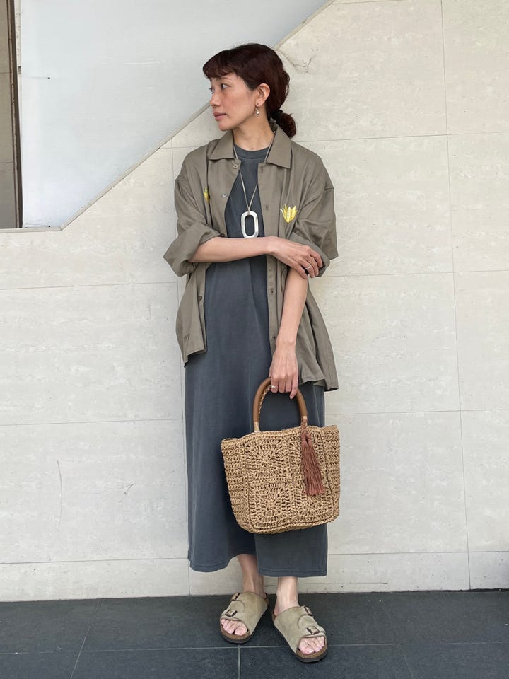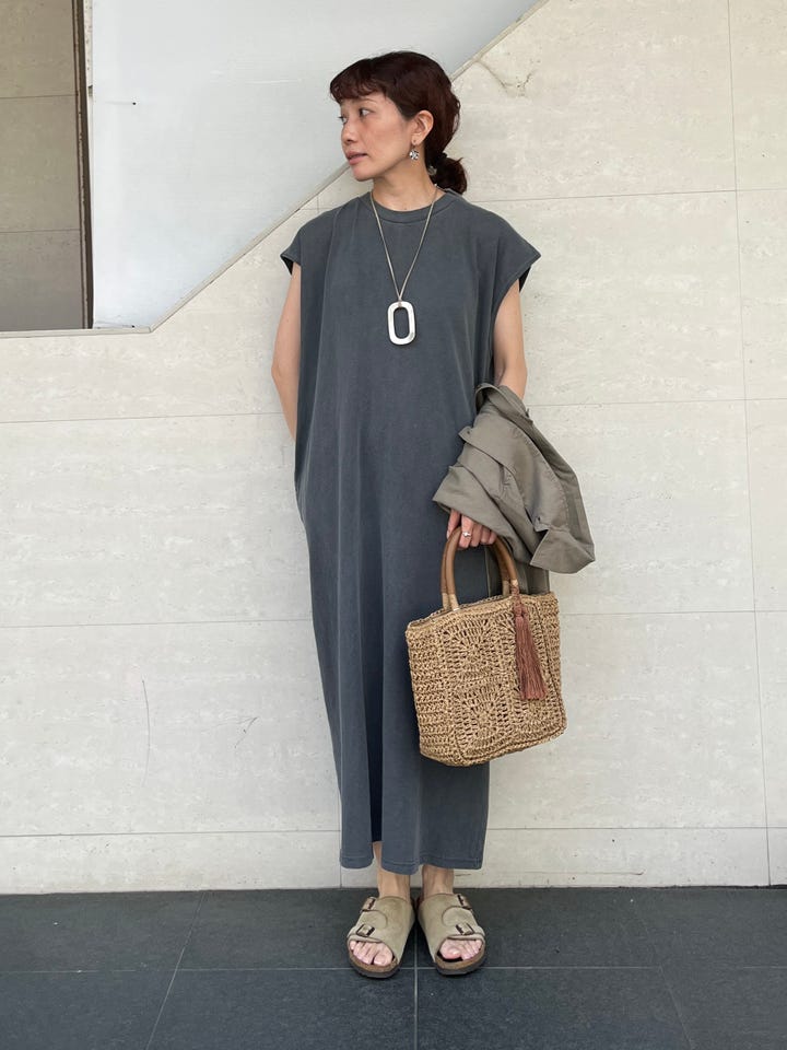 着心地:Tシャツ素材のワンピースでリラックスして着用出来ます。身長の高い方はボトムをレイヤードすると良いバランスだと思います。