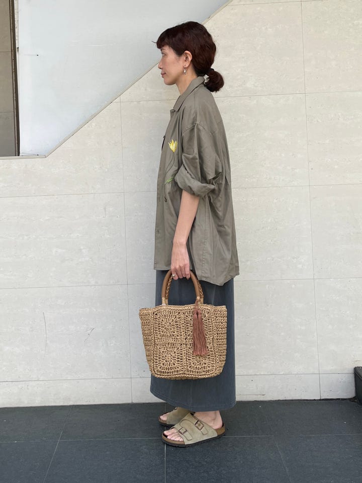 着心地:テロっとした素材で落ち感のあるシルエット。一枚でも羽織としてもお使いいただけます。