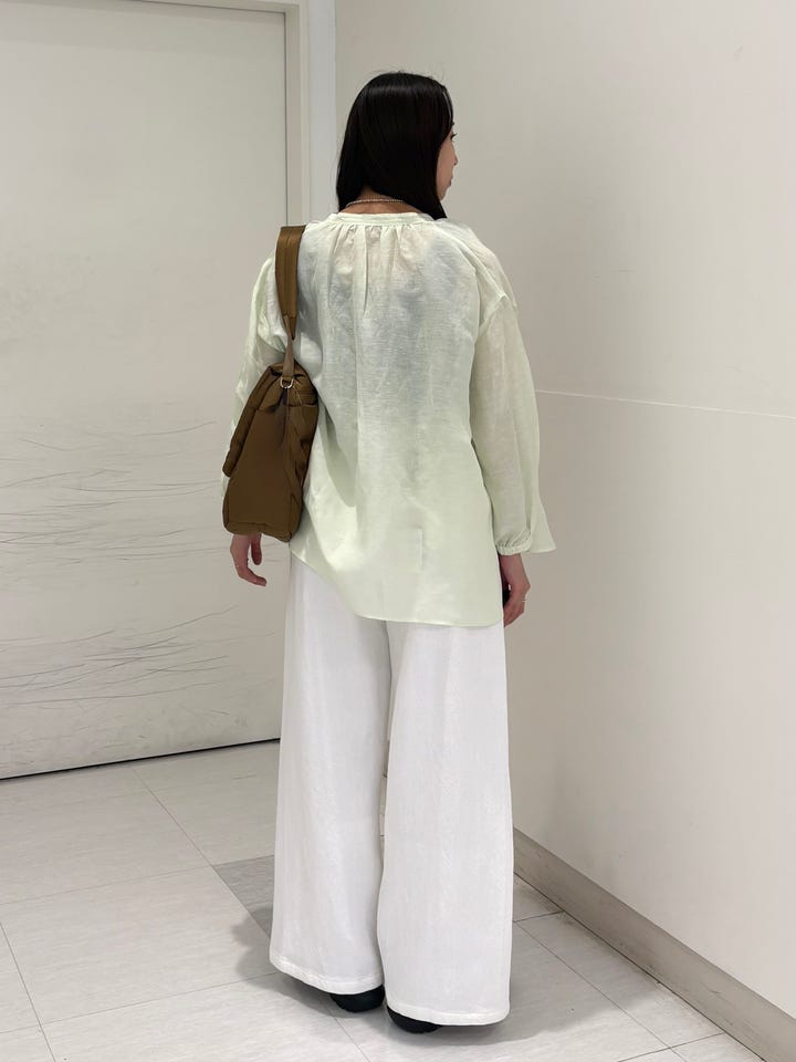 〔ONE SIZE〕《一部追加予約》〈手洗い可能〉IMPERIAL LINEN 混 バンドカラー スキッパー シャツ