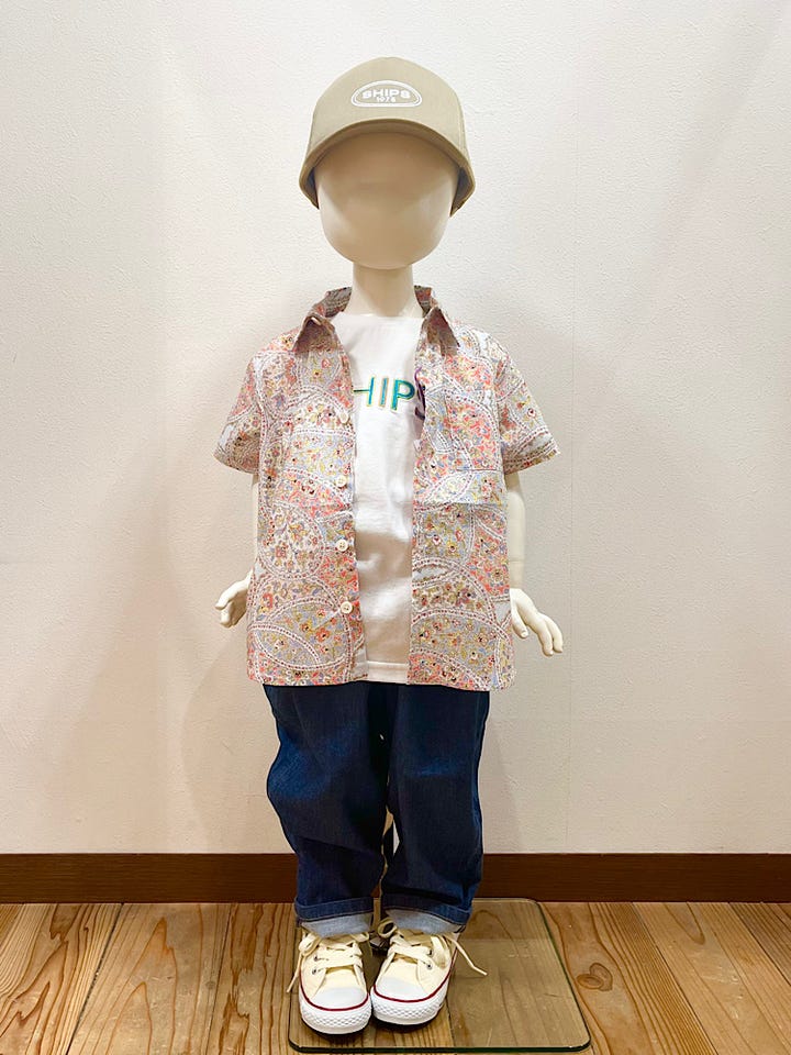〔80〕SHIPS KIDS:80〜90cm / リバティ プリント 半袖 シャツ