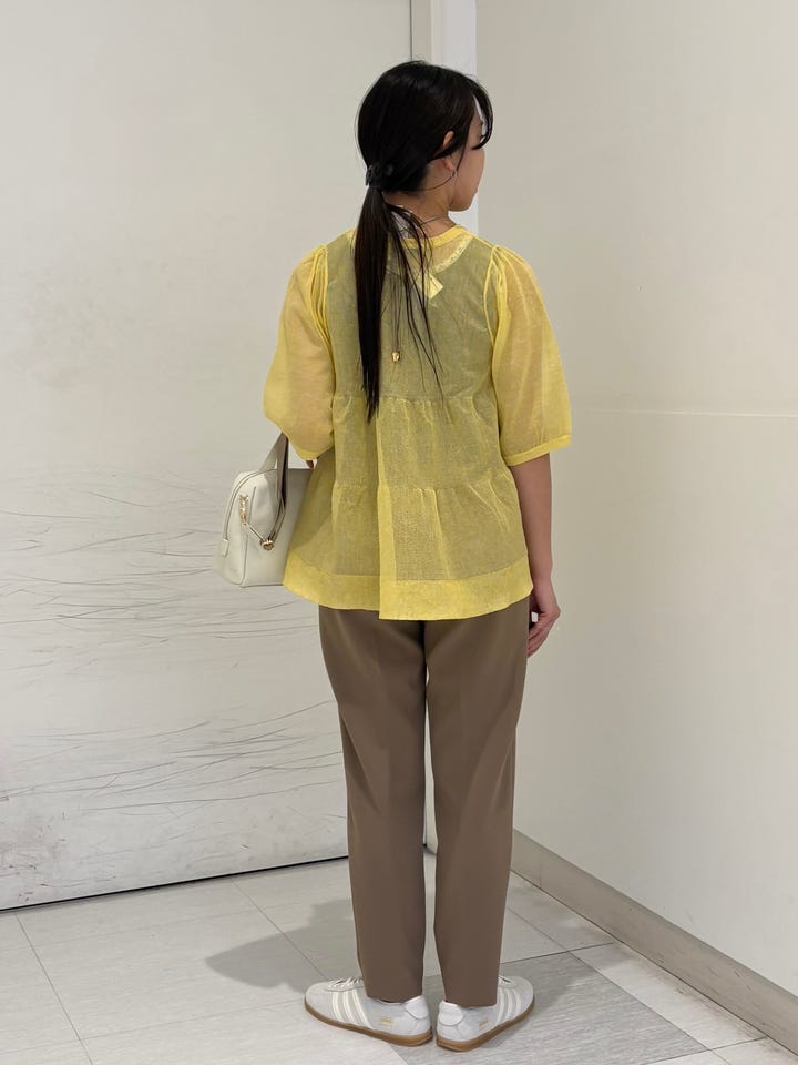 シアー素材で涼しく着れます。ティアードシルエットで綺麗めな印象。お尻かかるくらいの丈の長さ。