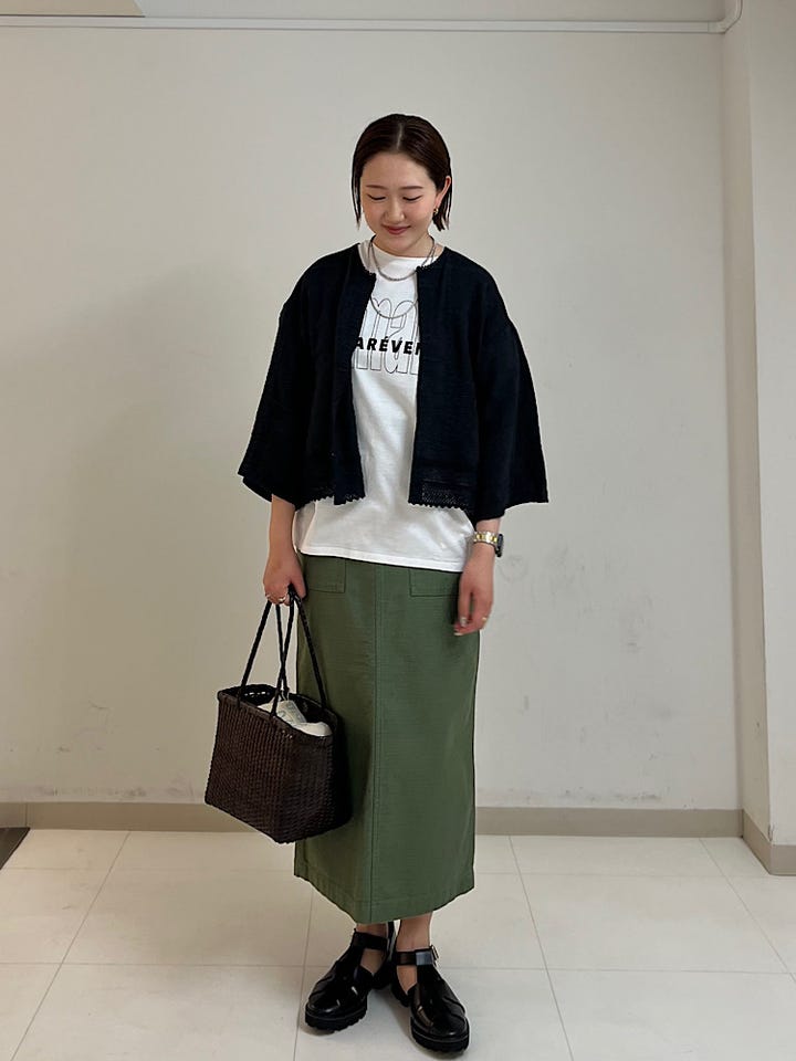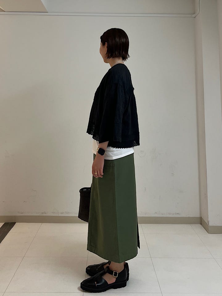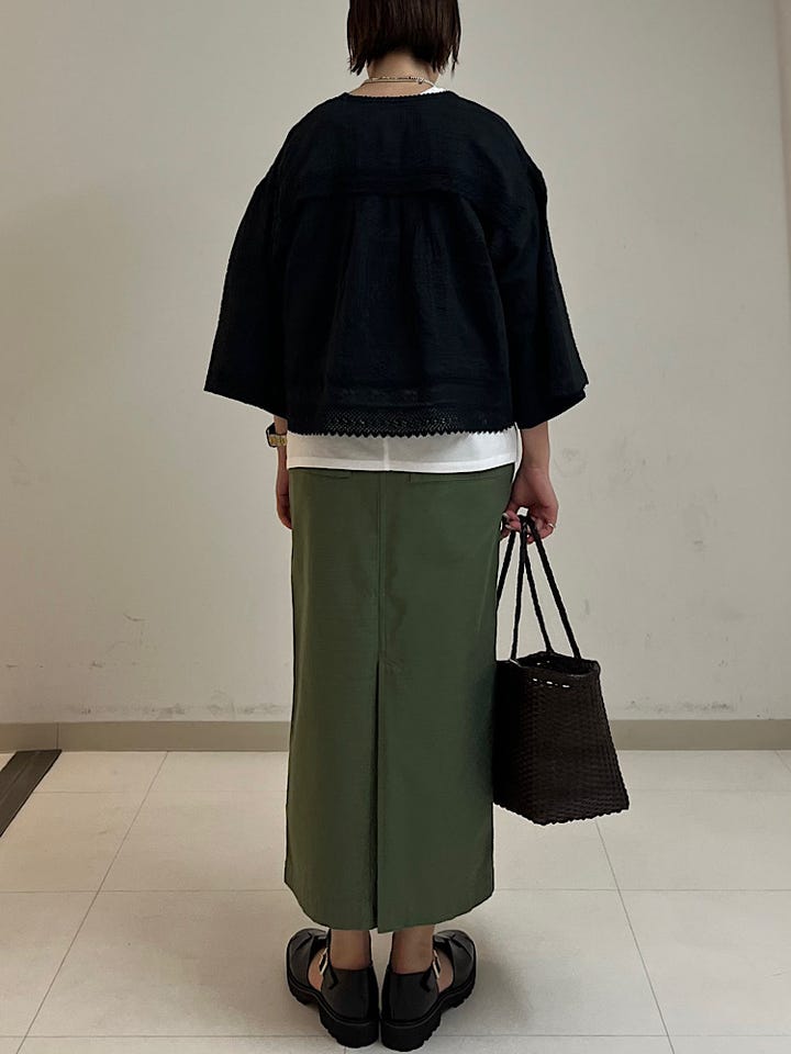 素材感/着心地:タイトスカートなので上に大きめのシャツなど着てもバランスが取りやすいです。