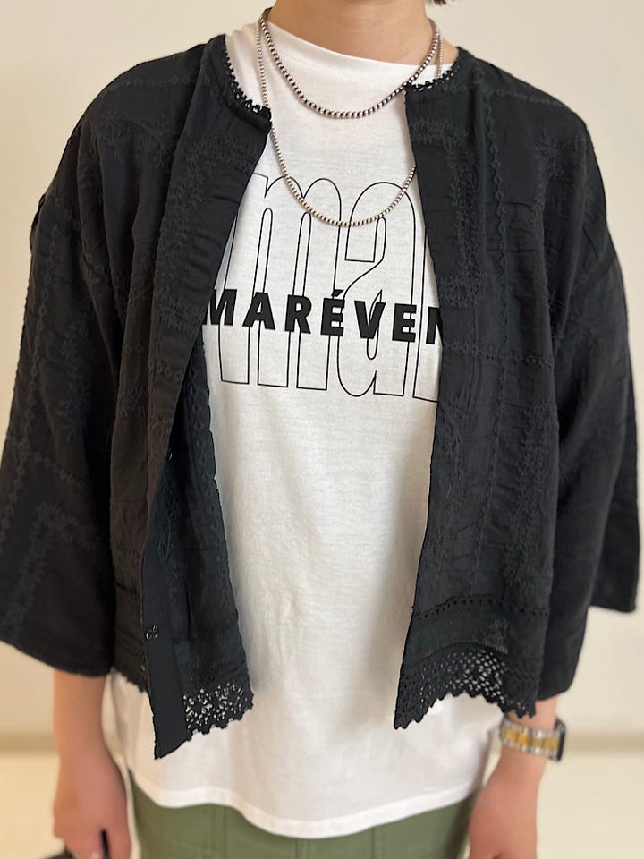 〔ONE SIZE〕〈手洗い可能〉パッチワーク レース ショート スリーブ 羽織 ブラウス