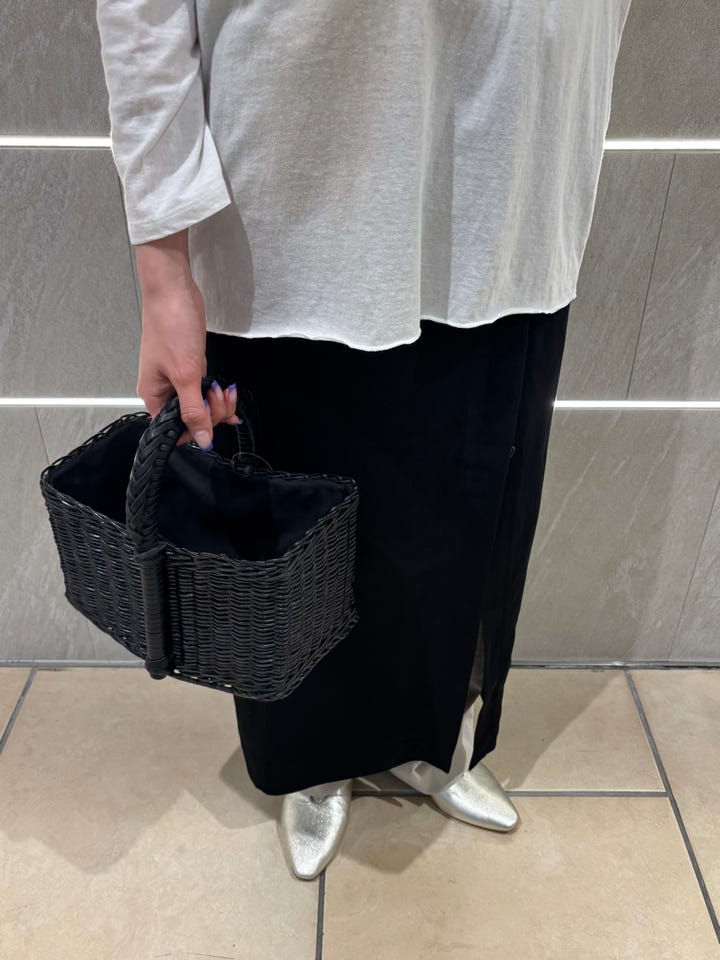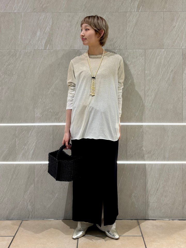 素材感・着心地:麻が入っているため、さらっと清涼感のある素材感です。深めのスリットが入っているので、パンツとレイヤードしても可愛かったです。