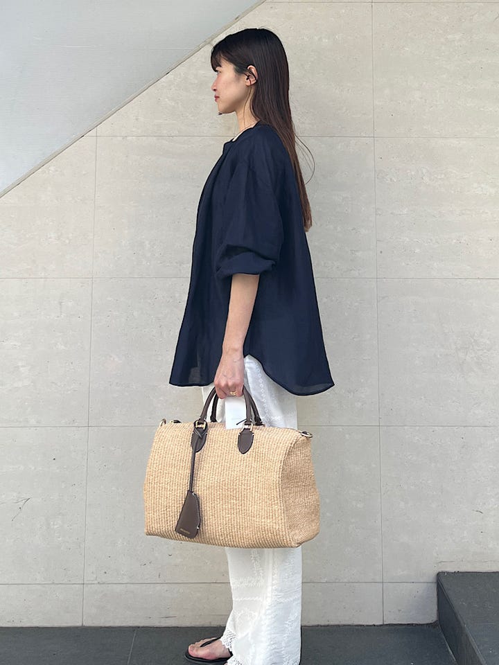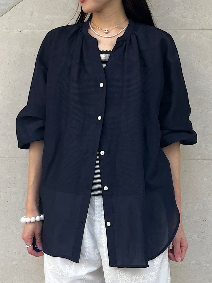 〔ONE SIZE〕《一部追加予約》〈手洗い可能〉IMPERIAL LINEN 混 バンドカラー スキッパー シャツ