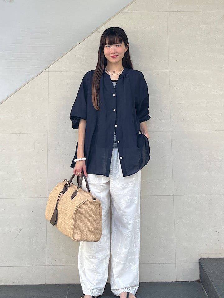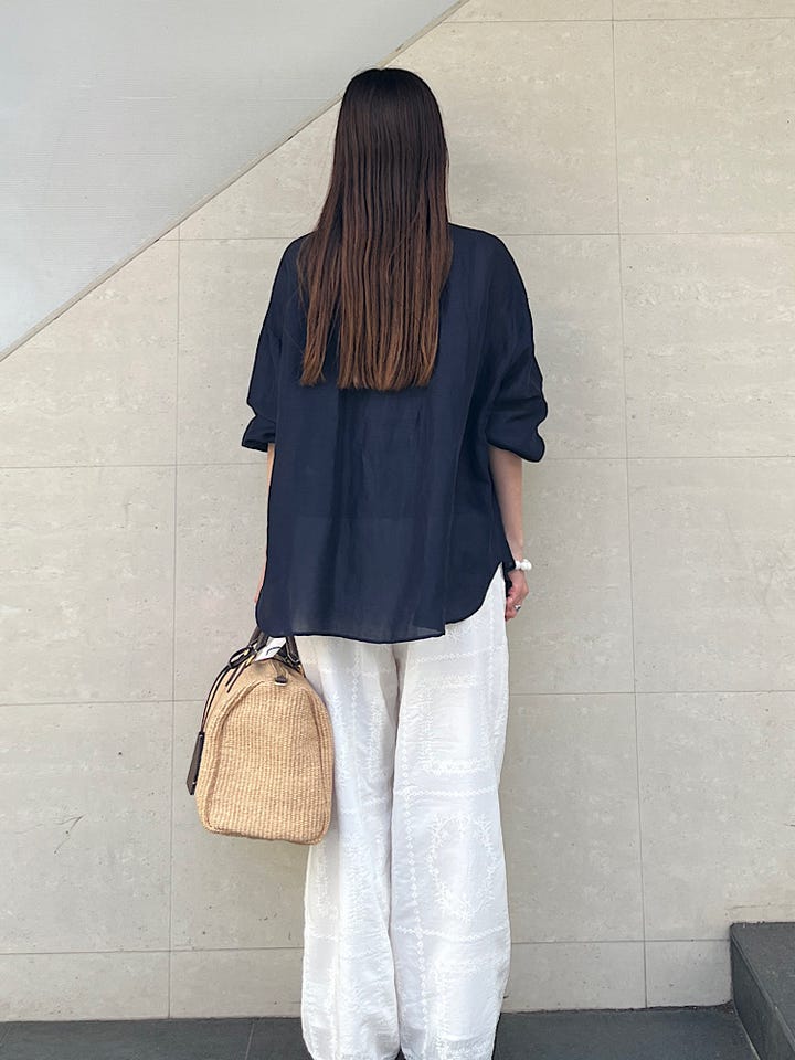 ふわっとしたシルエットで着丈もお尻が隠れる長めのデザインです。とても柔らかいリネンで着心地良く、肌離れも良いのでこれから気温の上がる季節にもおすすめです!