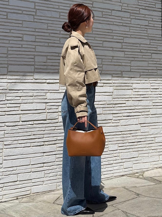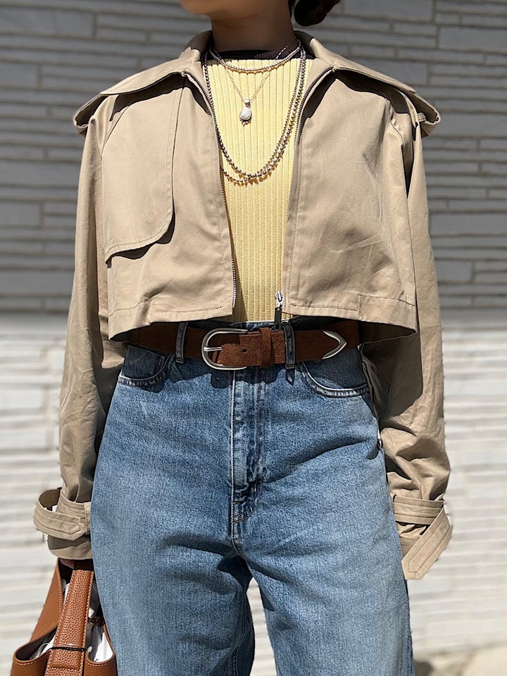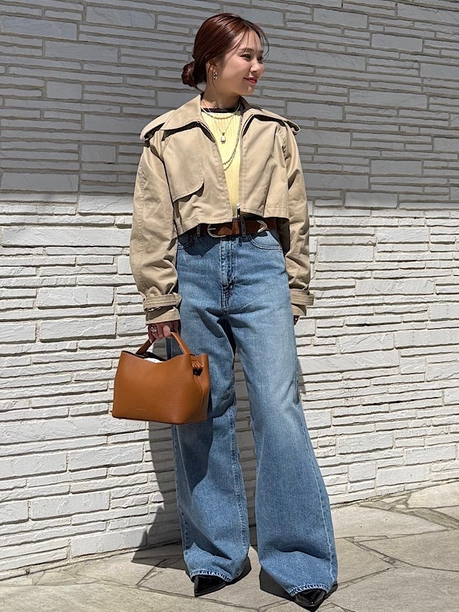 着用感 : 低身長には嬉しい短めな着丈です!コーディネイトのバランスが良く見えます。やや大きめな襟付きなので小顔効果もあります。