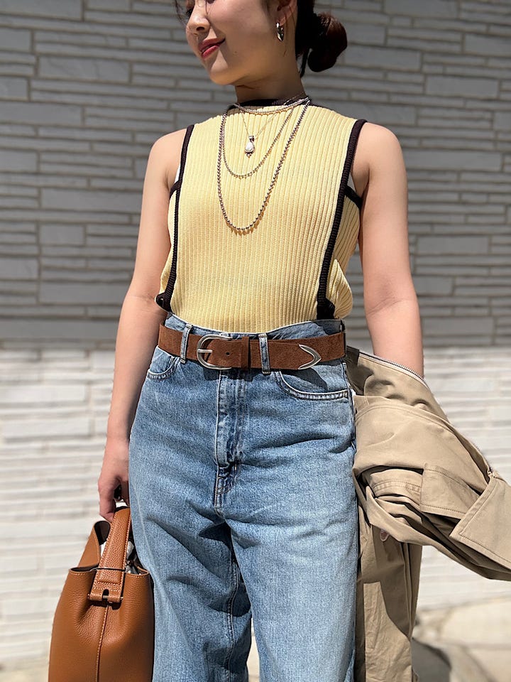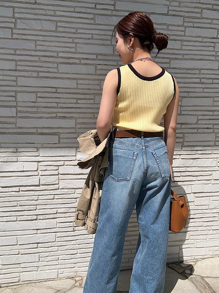 着用感 : 黄色が可愛いです!とても発色が良く、これからの季節にぴったりなお色です。リブニットの素材なので伸縮性があり動きやすいです。